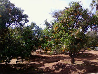 Vägg i vägg med stallet där jag rider bor en dam vars dignande fruktträdgård jag sneglar avundsjukt på varje gång jag kör förbi. Där finns grapefruktträd, citroner, lime, mandariner och flera sorters apelsiner, och träden är så sprängfyllda med frukt att grenarna närapå hänger i marken. Beth, som äger och driver stallet, brukar gå dit och plocka apelsiner åt hästarna, och igår gav hon mig ett par plastkassar och sa åt mig att plocka med mig så mycket frukt jag kunde bära – eftersom damen med fruktträden annars skulle slänga överflödet. Egenplockad grapefrukt till frukosten är bättre än julafton, för en fruktnarkoman som undertecknad.